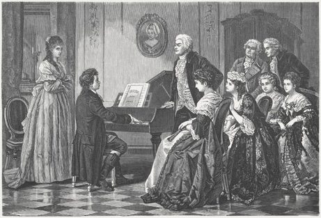 當時莫札特每天演奏兩場是平常的事情,他要經常乘坐馬車,奔走於各演出場地之間。各地貴族要預先在多天之前作出邀請,才能邀約莫札特在他們的宴會或私人音樂會上演奏。1764年時,只有8歲的莫札特已完成他第一首的交響樂曲;年僅12歲時,莫札特已寫下了一部歌劇。