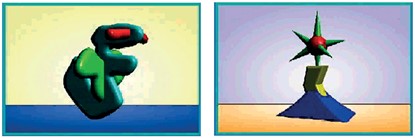 視覺學習實驗中給嬰兒所看的彩色圖片,測試兩組嬰兒「習慣化」的時間