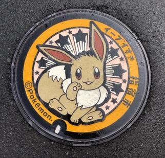日本指宿市印有第一世代的寶可夢伊布的人孔蓋。