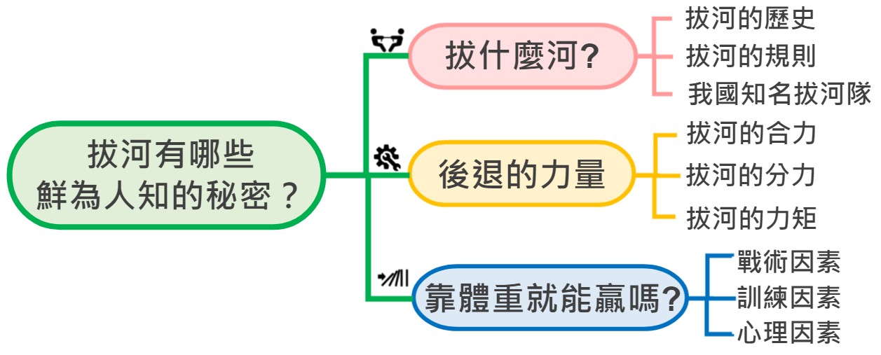 透過這次探究,我們知道了和拔河有關的祕密,希望解密之後,能幫助拔河隊邁向致勝的「拔」萃之路。