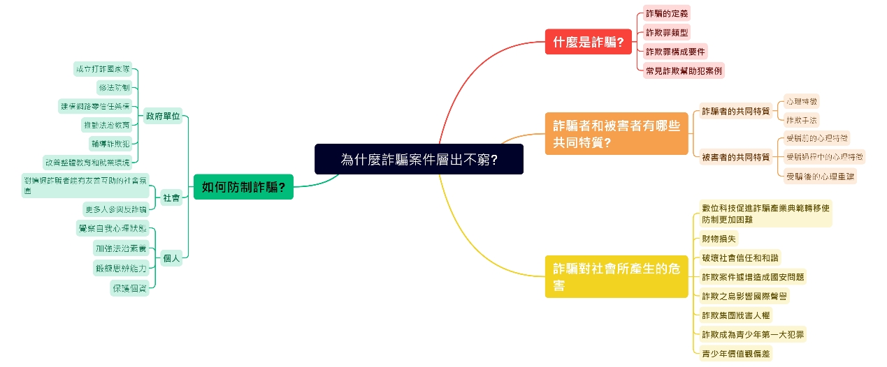 詐騙案件層出不窮的原因是由於詐騙集團利用人類的弱點和心理特徵進行詐欺。他們濫用人們的貪財心理、需求心理、疏忽心理、迷信心理、同情心理和恐懼心理,創造各種詐騙手法。此外,詐騙者利用數位科技的進步和對個人資料的利用,進一步深化詐騙手法,讓受害者產生信任感。同時,詐騙案件在臺灣和全球範圍內呈現上升趨勢,造成巨大的財物損失和人權侵害,對青少年尤其具有威脅。為了防制詐騙,政府需加強打擊力度,推動法治教育、加強網路安全措施,並改善教育和就業環境,同時需要社會和個人的積極參與,建立友善互助的社會氛圍,提升個人的法治素養保護個人資訊的意識。只有這樣,才能更有效地防止詐騙案件的持續發生。