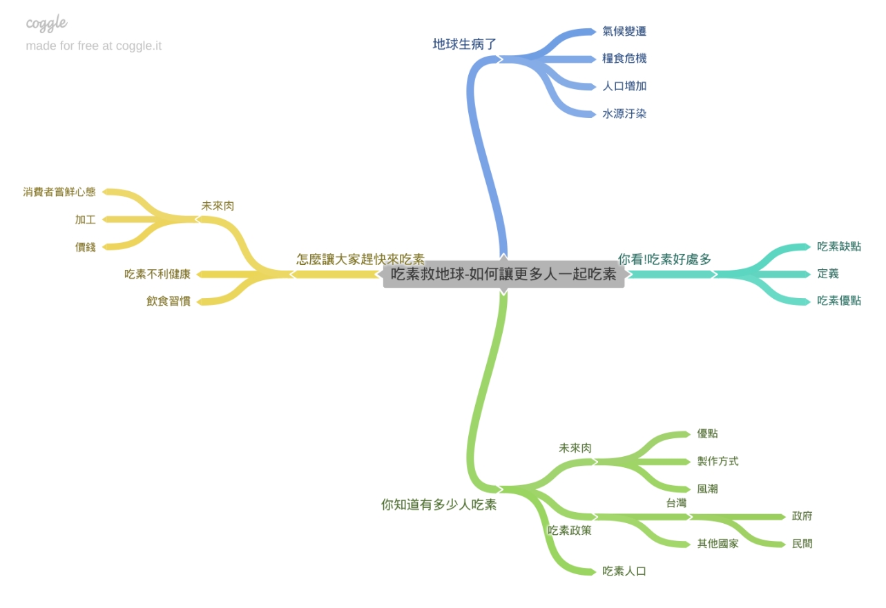 我們從這次的探究得知吃素真的能夠救地球,接下來也會持續跟身邊的人推廣之素的好處,讓更多人加入吃素的行列。此外關於世界上到底有多少人口在吃素,其他國家是如何推展吃素地這些訊息,也想要再深度查找,唯有知道現況和差異才能夠依據不同國家的風土民情,制定出最適合不同國中地推展吃素的方法和政策。