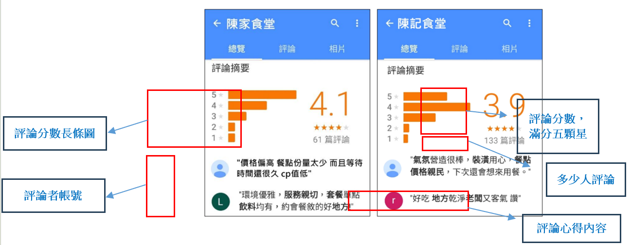 Google 評論就是 Google 提供的一項服務,讓使用者可以針對某個特定 的商家、地點、產品或服務進行評論和評分,而這些評論和評分將公開顯在 Google 搜尋結果和 Google 地圖上,供其他使用者參考,如圖1。