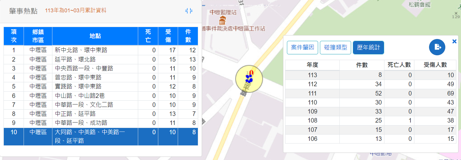 科技執法成效分析。位置:桃園市中壢區大同路/延平路